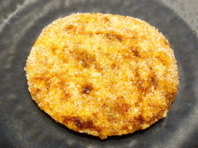 これは時代により甘さ控えめのものの需要が増えてきたことによるものですが、それでも片面のみざらめが付いているとはいえ他社のものと同等かそれ以上のざらめ量は付いております。